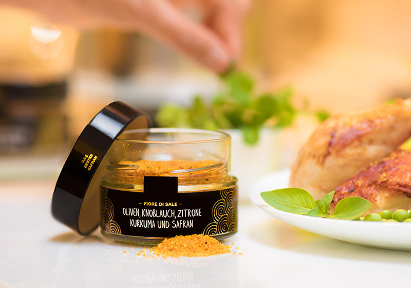 برای طراحی بسته بندی نمک زعفران چینو از بسته بندی شیشه ای استفاده کردیم که علاوه بر لوکس بودن و متفاوت بودن، ظاهری شفاف دارد و خریدار می تواند با اطمینان این محصول را بخرد. همچنین استفاده از فونت و رنگ های طلایی که بر روی لیبل این نمک استفاده شده هماهنگی مناسبی با محصول آن یعنی نمک زعفران دارد. از آنجا که معمولا برای نمک بسته ای ساده و مینیمال در نظر گرفته می شود، از تصاویر و طرح های شلوغ اجتناب کردیم.