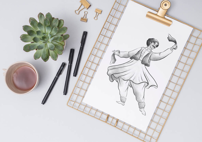 گروه طراحان عرفان در طراحی کاراکتر تبلیغاتی برند دستچین، مردی افغان را طراحی کردند که در حال اجرای رقص محلی افغانستان است. در طراحی این و کاراکتر ، طراحان ما نکات زیر را در نظر گرفتند و اجرا کردند: