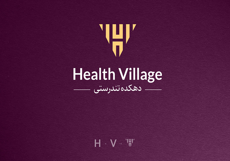 تیم طراحی نیز با مطالعه دقیق خدمات این مجموعه و همچنین دایره مخاطبانش و هماهنگی با مشتری اقدام به طراحی آرم این برند با استفاده از حرف اول کلمات انگلیسی Health و Village  کرد که در نهایت به طرح فوق انجامید. انتزاعی کردن حروف انگلیسی و در نهایت قراردادن در فرم مثلثِ برعکس به خاص بودن و همچنین سرزنده و پر انرژی بودن این طراحی لوگو کمک شایانی کرده است.