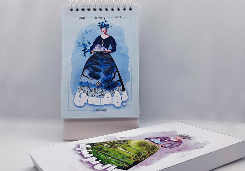 طراحی تقویم رومیزی فانتزی سال 1401 توسط گروه طراحان عرفان که با سبکی متفاوت ارائه شده است. نکته قابل توجه در تقویم رومیزی این است که تمامی طرح های آن بصورت اختصاصی توسط طراحان ما تصویرسازی، ایده پردازی و اجرا شده است. این طرح ها با استفاده از رنگ روغن و اکریلیک نقاشی شده و در سبک سورئالیسم طراحی شده اند.