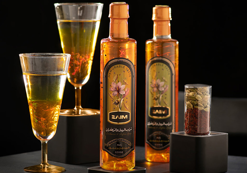 بسته بندی شربت زعفران زعیم به منظور نشان دادن ارزش و شکوه زعفران، از اصول هنری ایرانی الهام گرفته شده است.